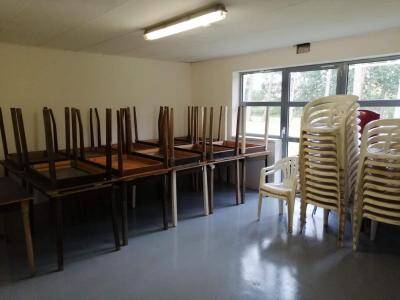 - Het gebouw dat verhuurd wordt, bevat 4 afzonderlijke lokalen, 1 ingerichte keuken, een grote speelzolder en een sanitaire blok met dames- en herentoiletten en 2 douches met warm water.